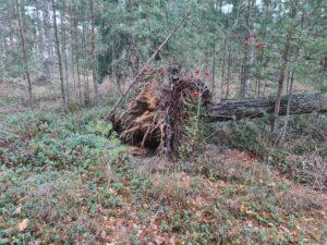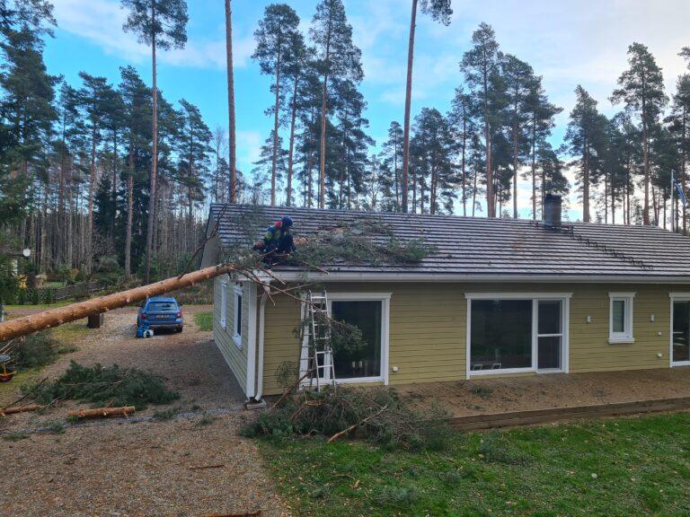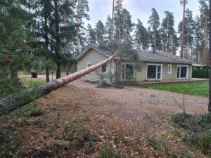 Novembri tormiste tuultega öösel (02.11.2024, kell 00.12), kui kõik majaelanikud olid juba voodis ja magasid, kostus raksatus, mille tekitas elumajale kukkunud mänd.