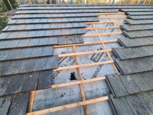 Õhtuks eemaldasin katuselt kõik katkised katusekivid ning puhastasin tolmuimejaga katuse aluskanga tekkinud prahist.