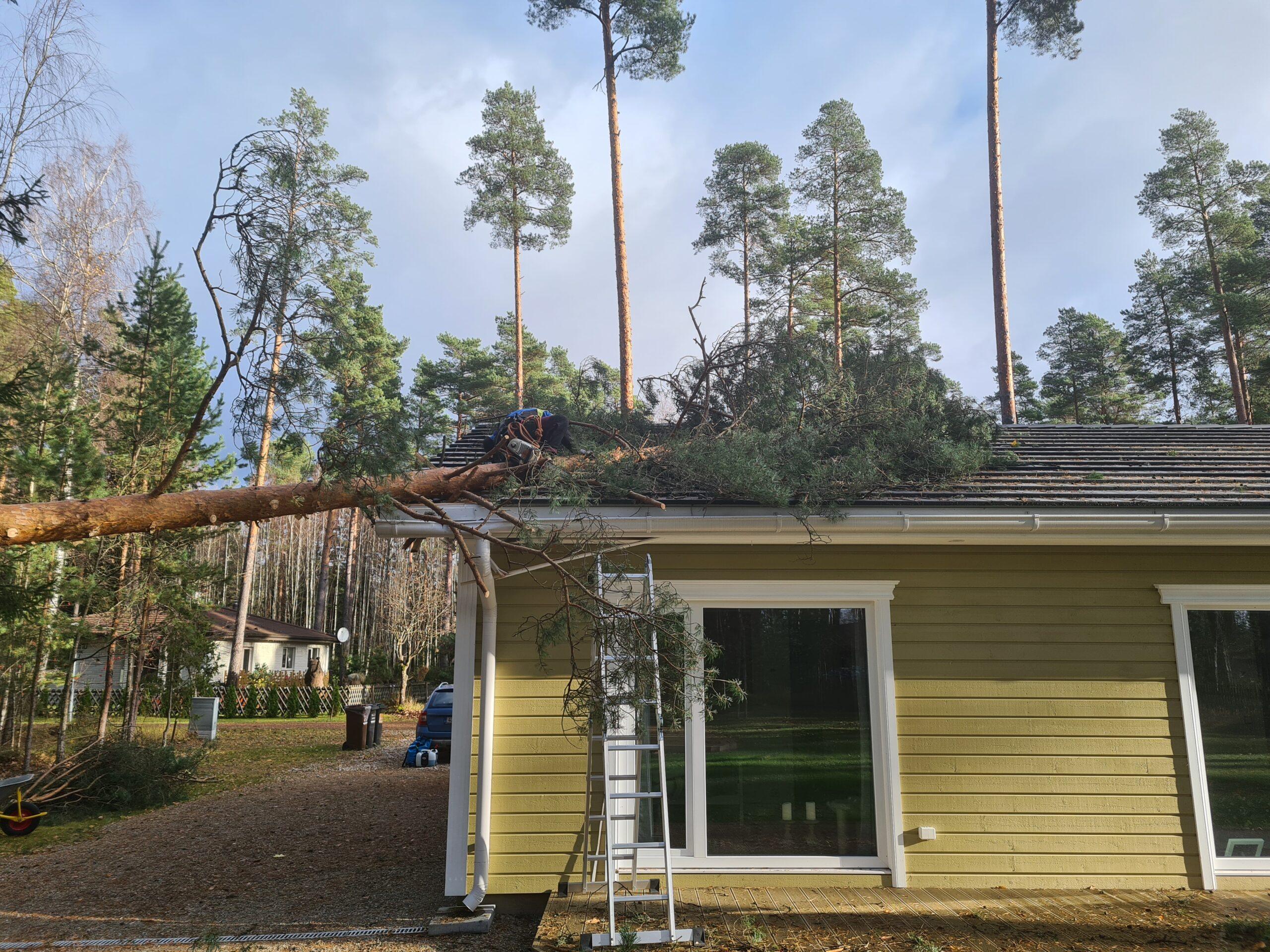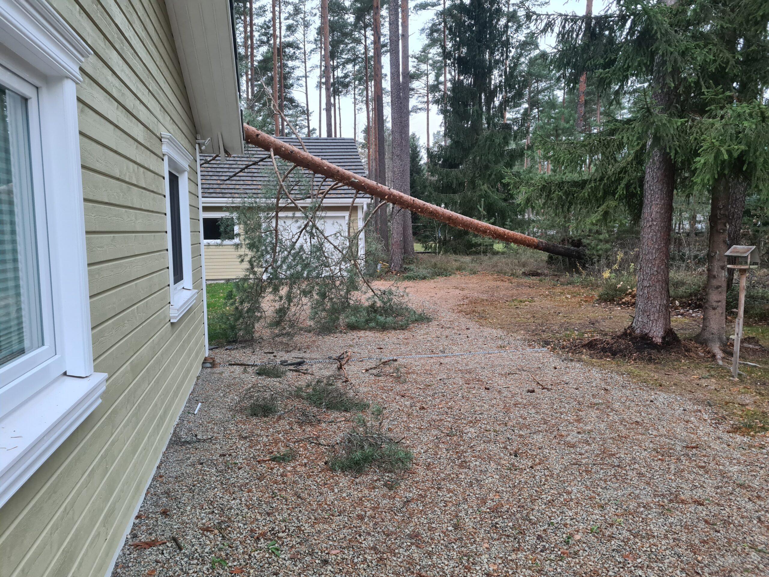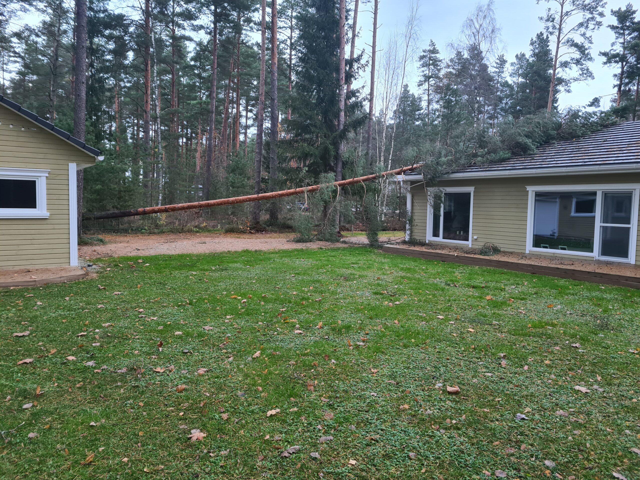 Novembri tormiste tuultega öösel (02.11.2024, kell 00.12), kui kõik majaelanikud olid juba voodis ja magasid, kostus raksatus, mille tekitas elumajale kukkunud mänd.