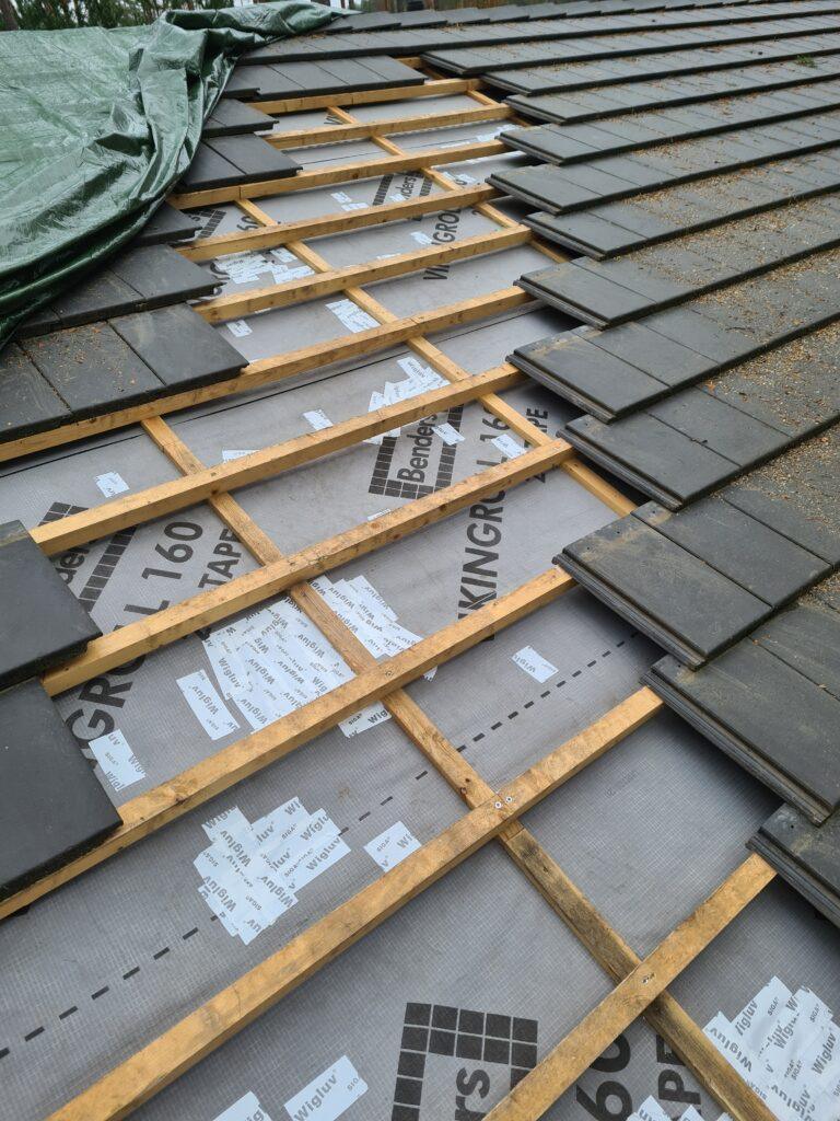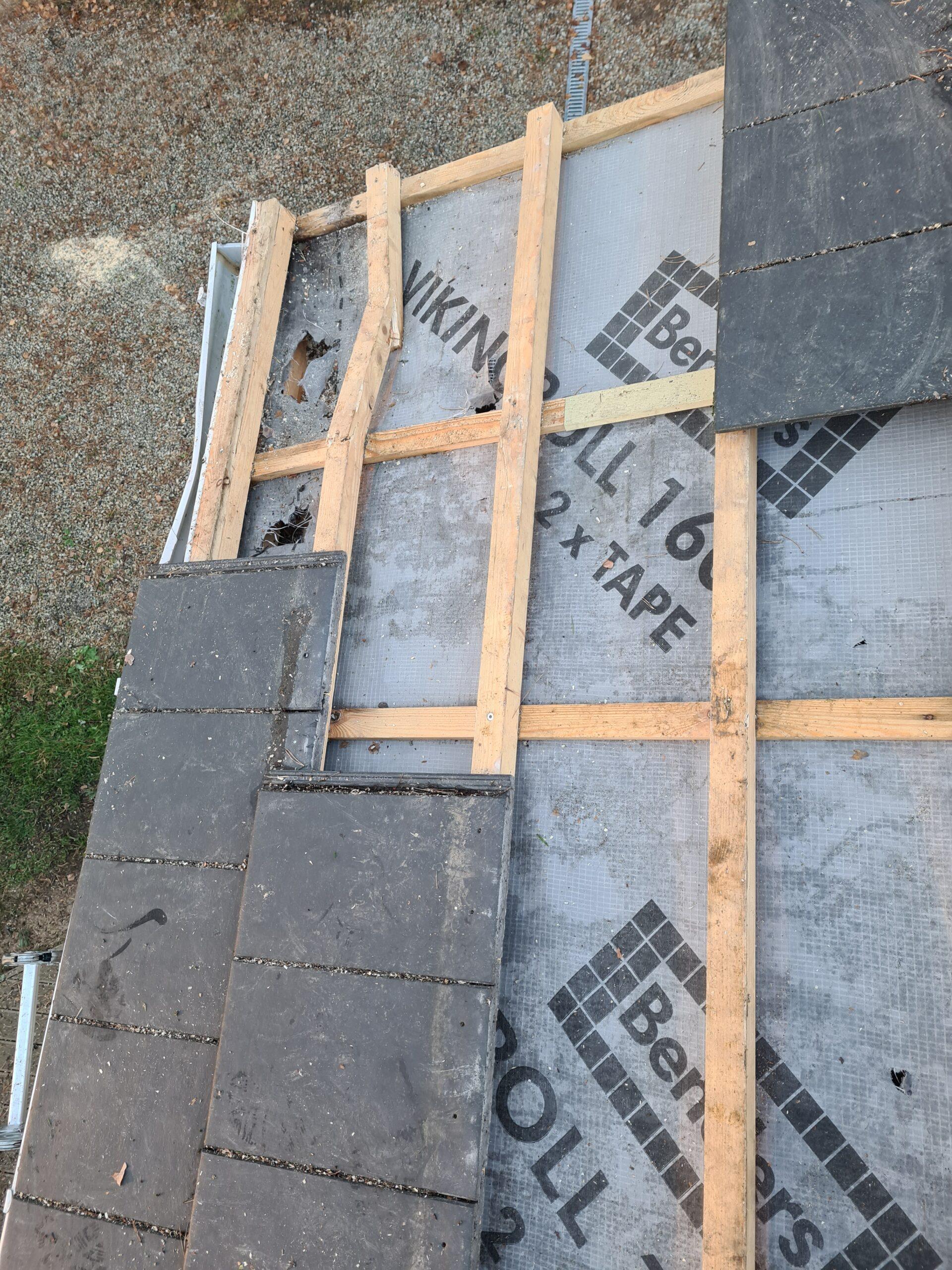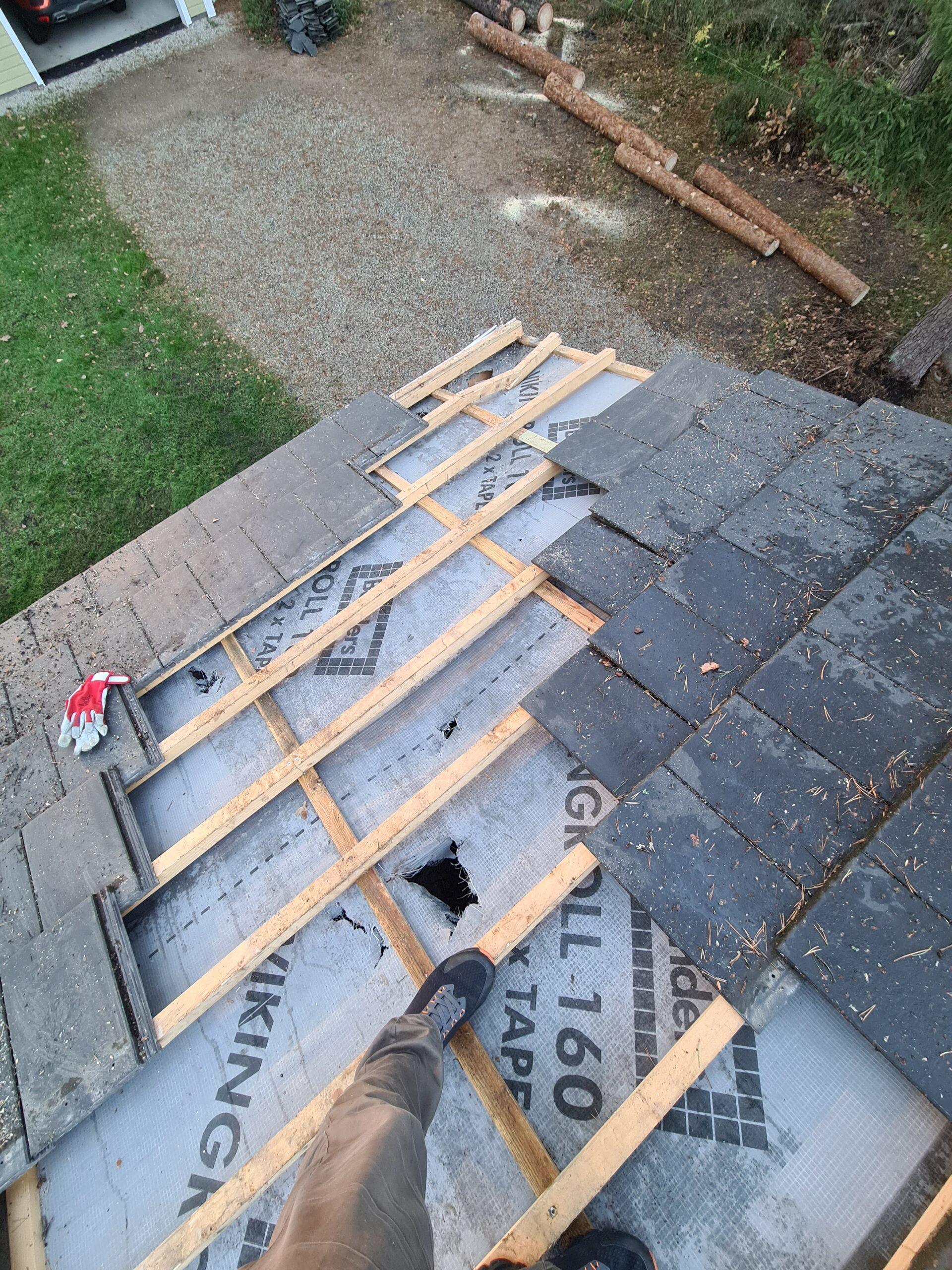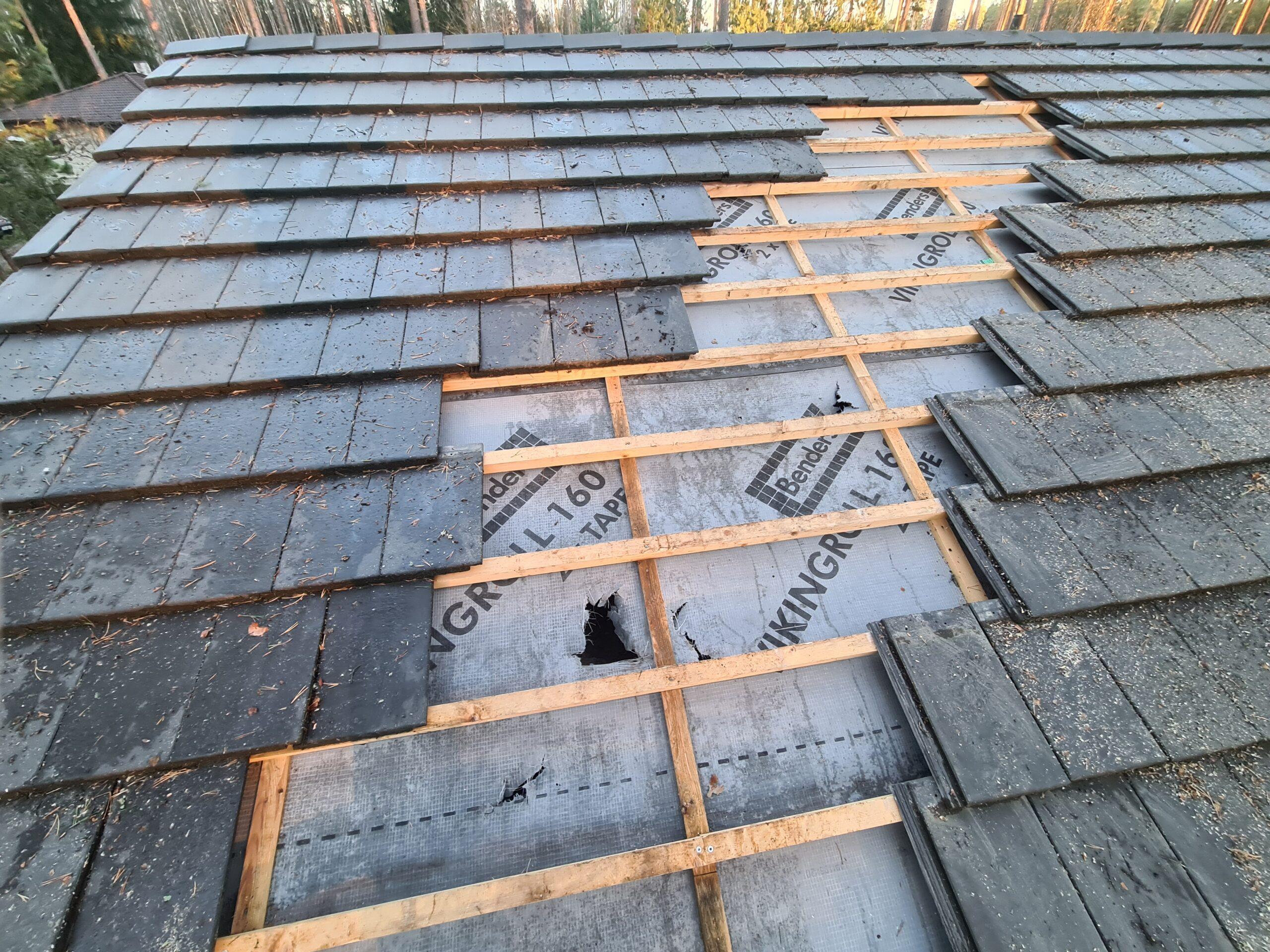 Õhtuks eemaldasin katuselt kõik katkised katusekivid ning puhastasin tolmuimejaga katuse aluskanga tekkinud prahist.