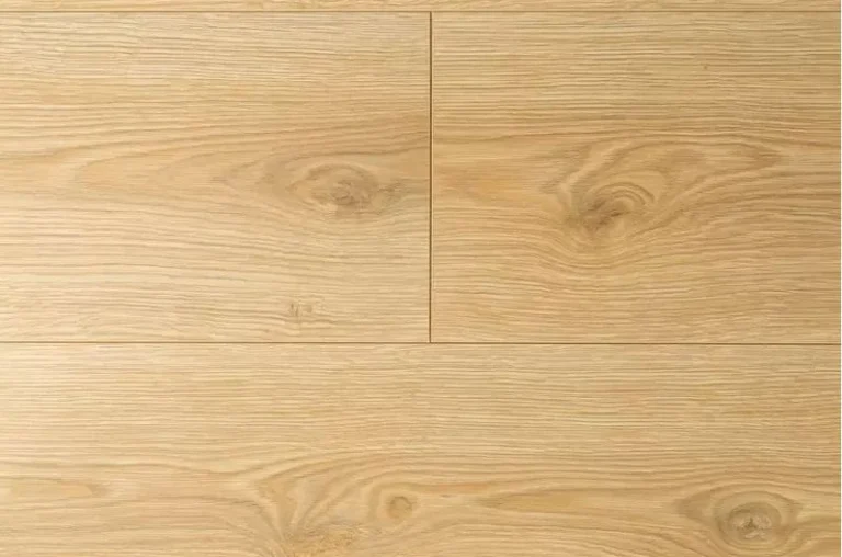 Ühelipiline, faasitud servadega, naturaalse tamme toonis laminaat.