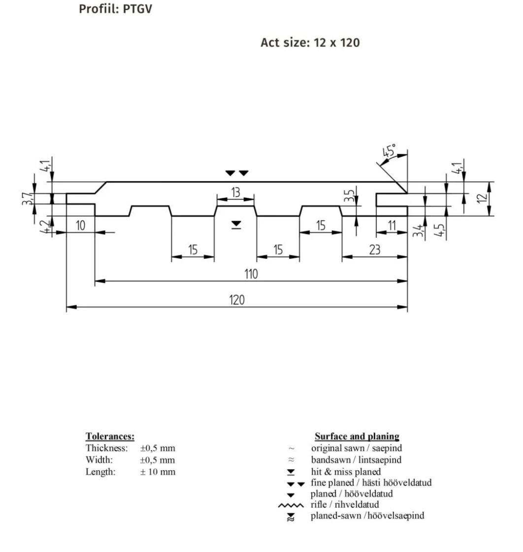Ühe laua mõõdud : 1380 x 193 x 10 mm (pikkus x laius x kõrgus).