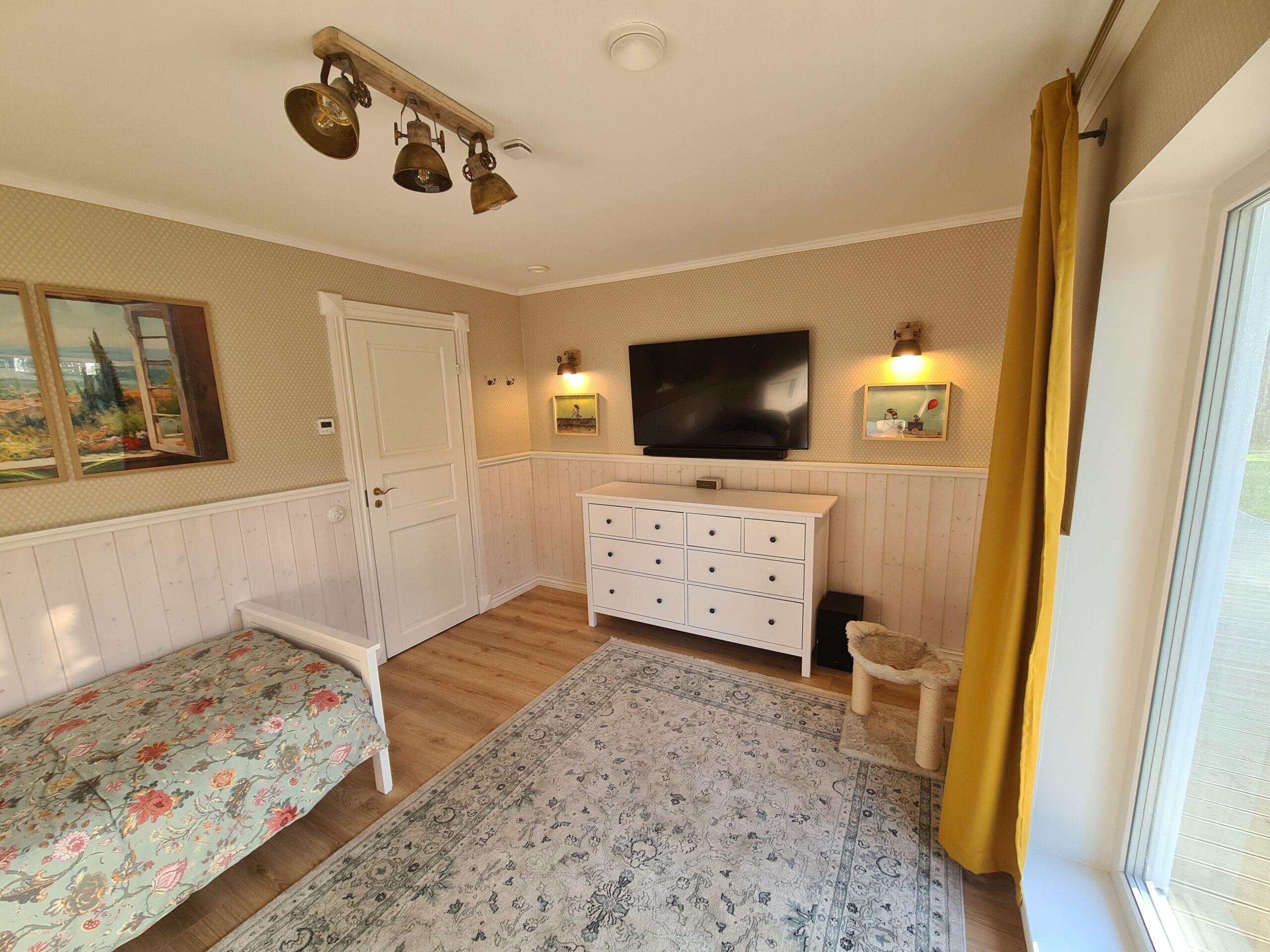 Olemasolevad pistikupesad jätsin vaid teleri taha, sest neid nagunii keegi ei näe.