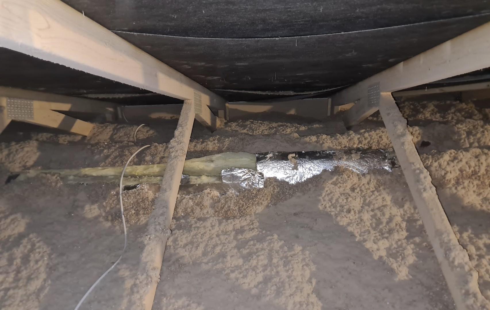 Kontrollides olukorda pööningul , selgus, et ventilatsioonitorude isolatsioon on mitmest kohast lahti.
